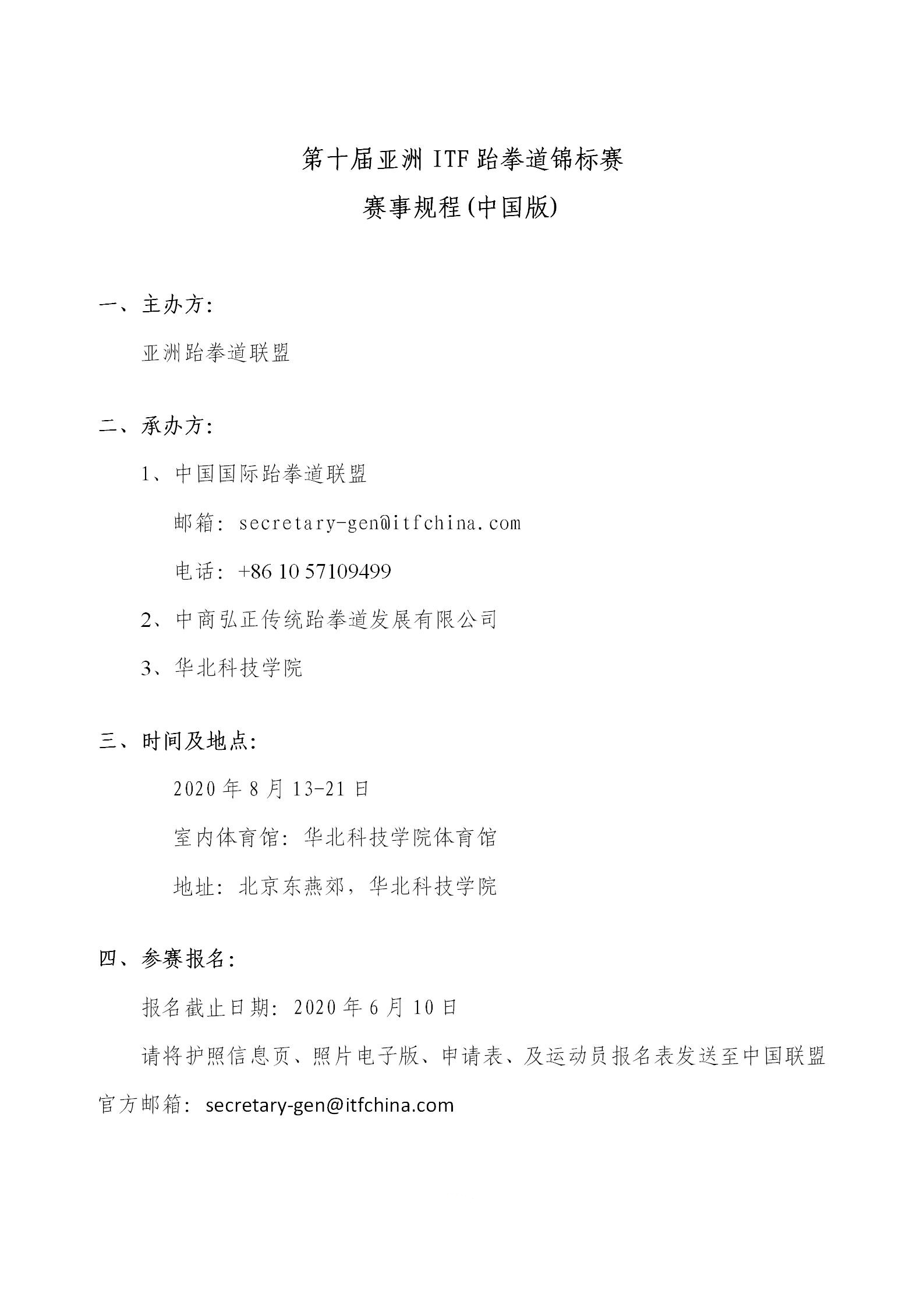 您的位置: 首页 >> 资讯中心 >> 赛事资讯>> 第十届亚洲ITF跆拳道锦标赛—赛事规程(中国版)