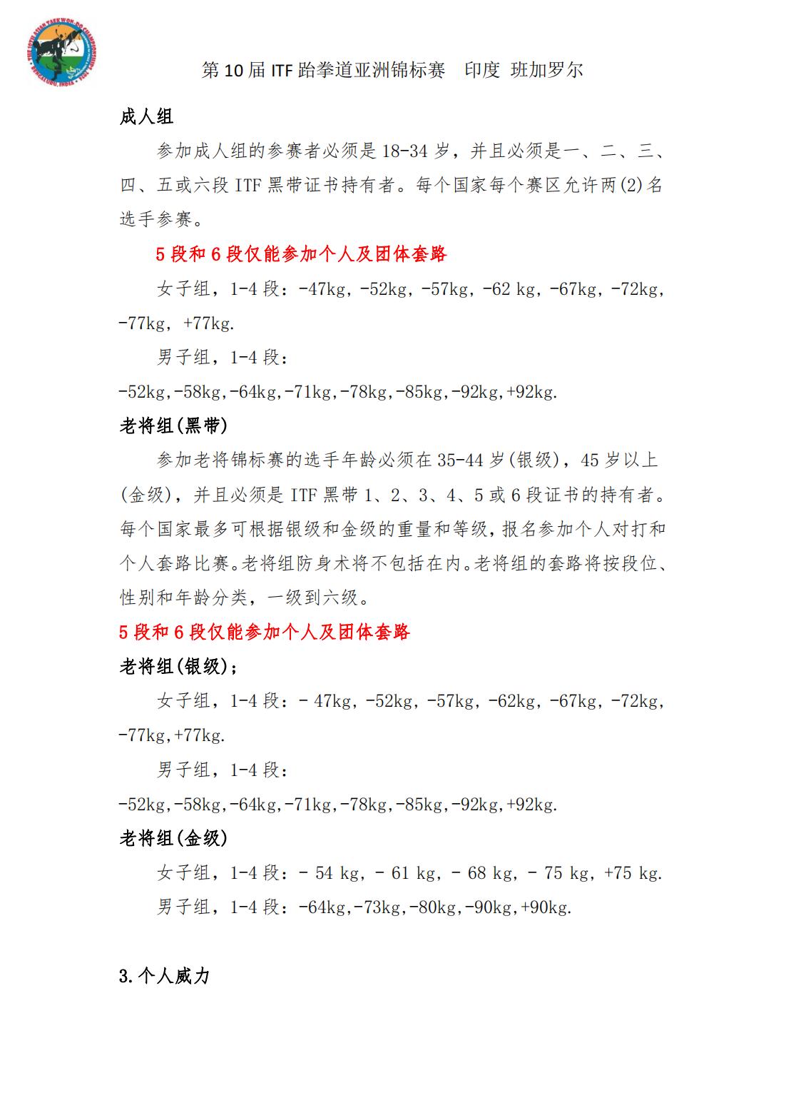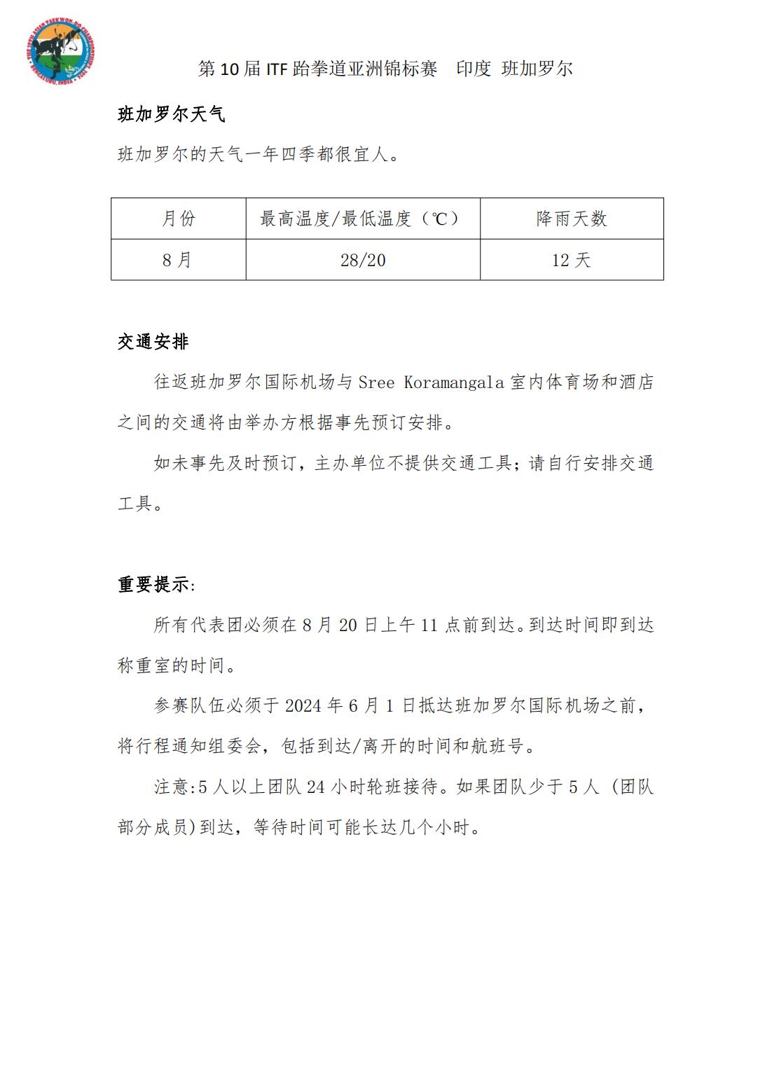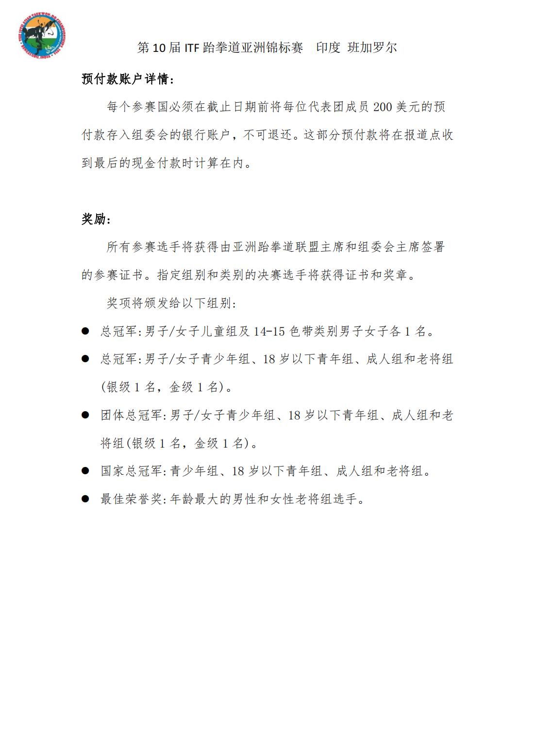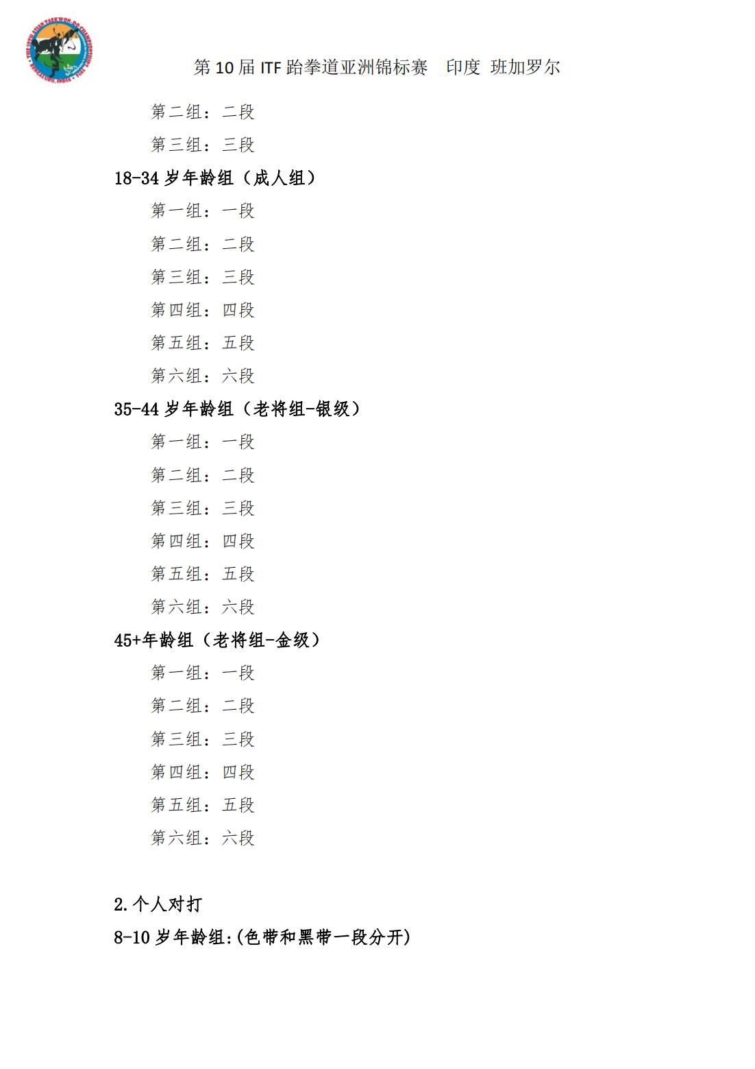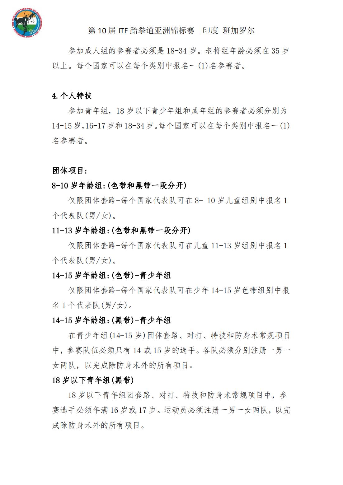 您的位置: 首页 >> 资讯中心 >> 赛事资讯>> 第10届亚洲ITF跆拳道锦标赛 2024年8月19日-25日 印度 班加罗尔