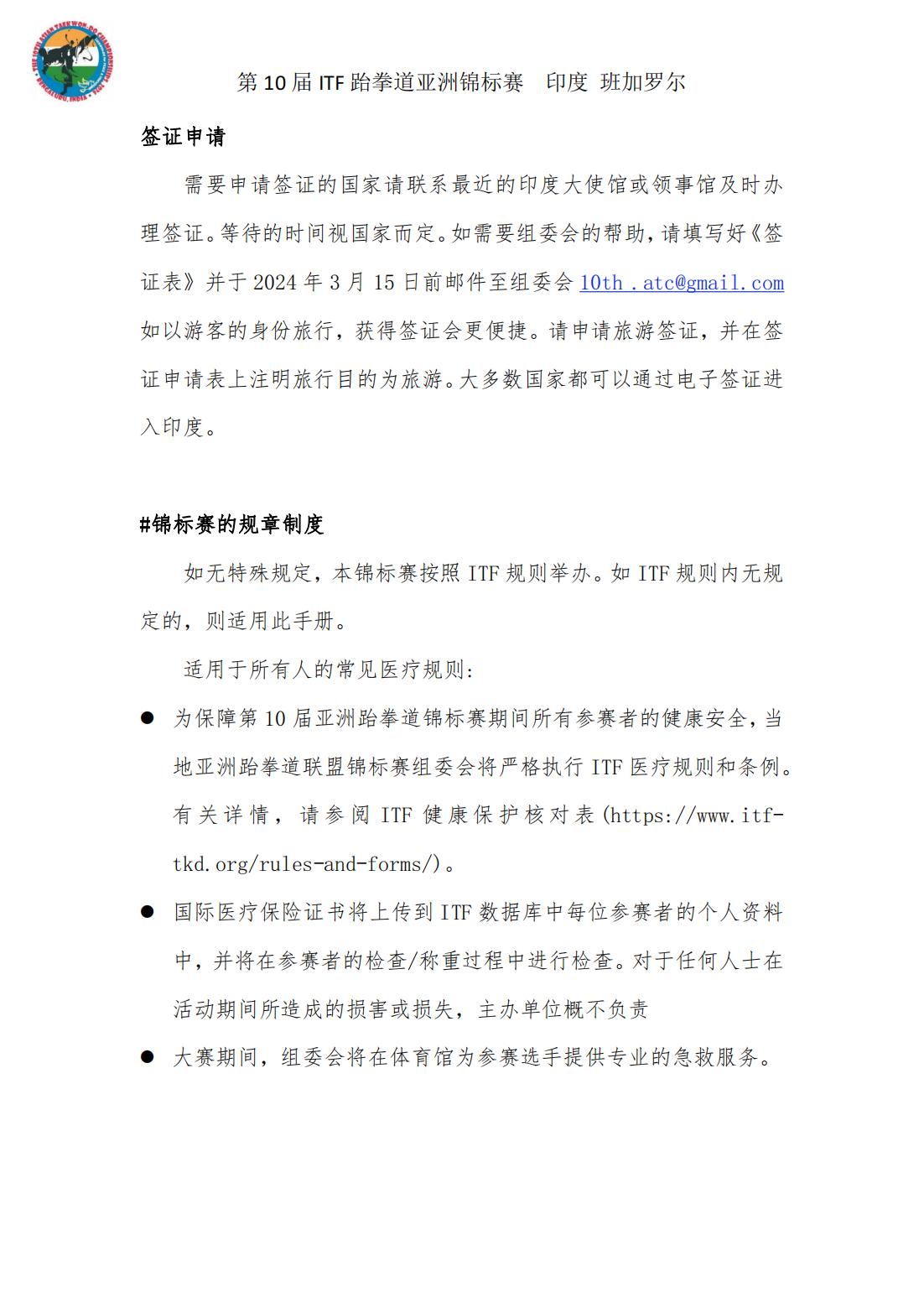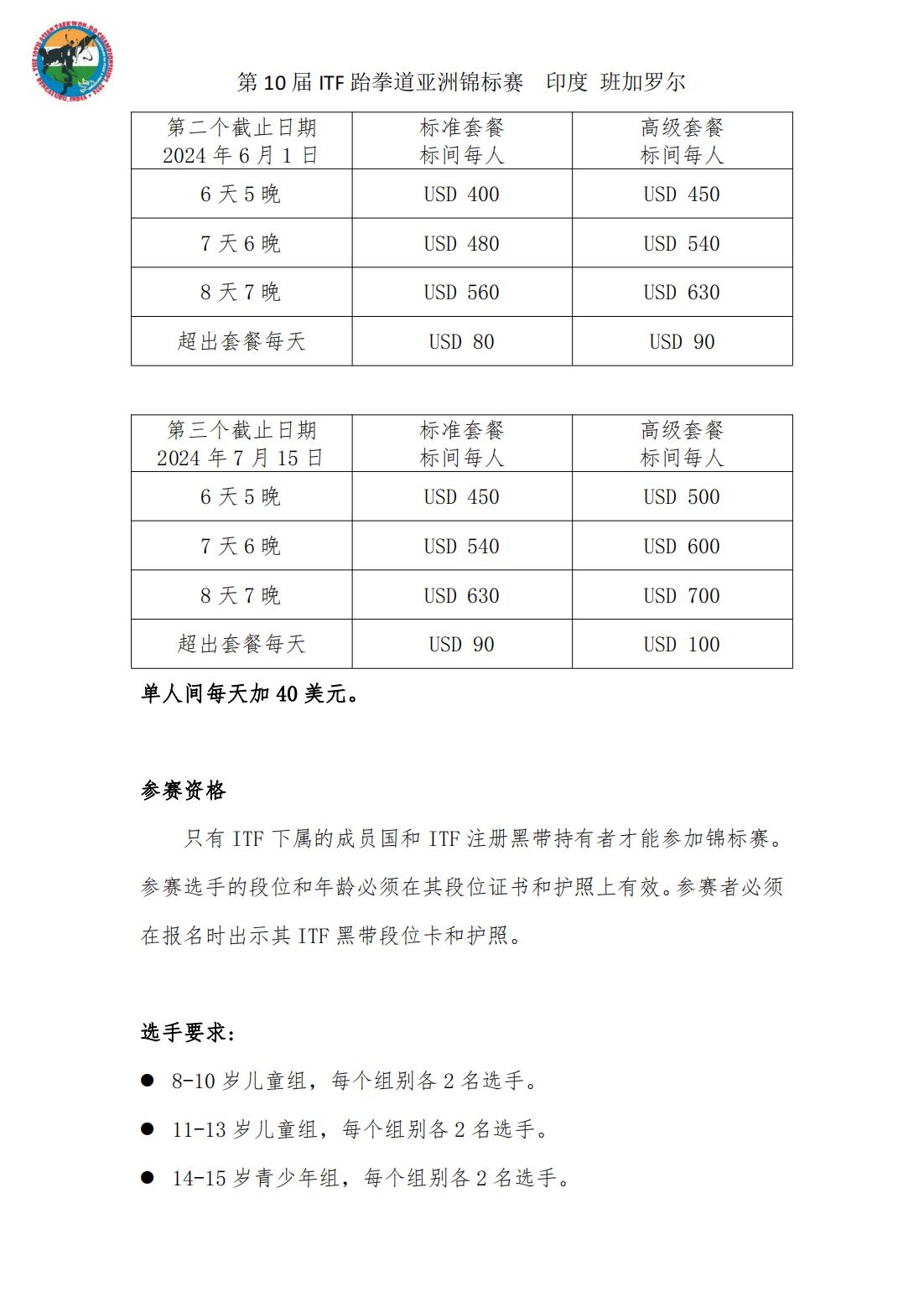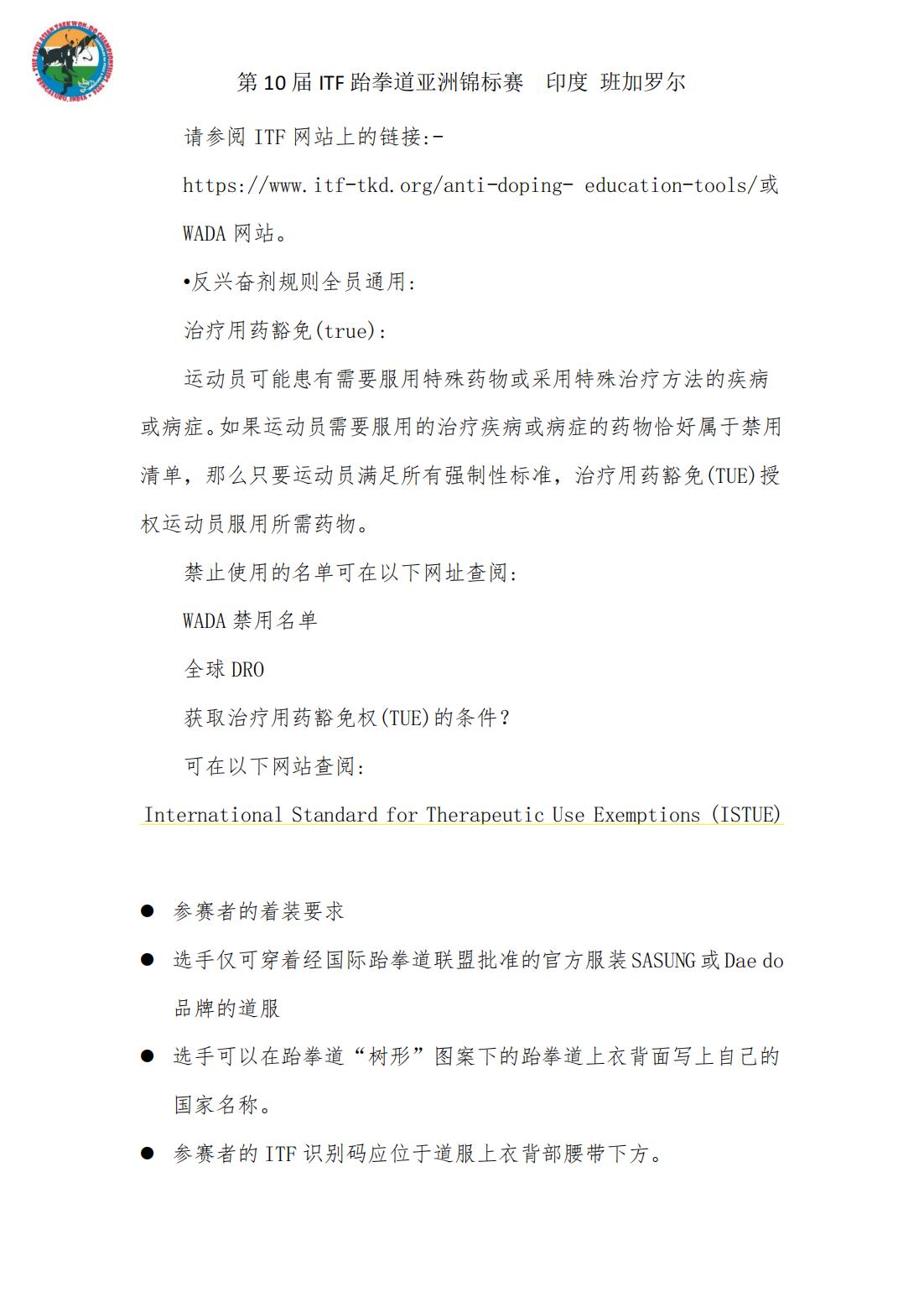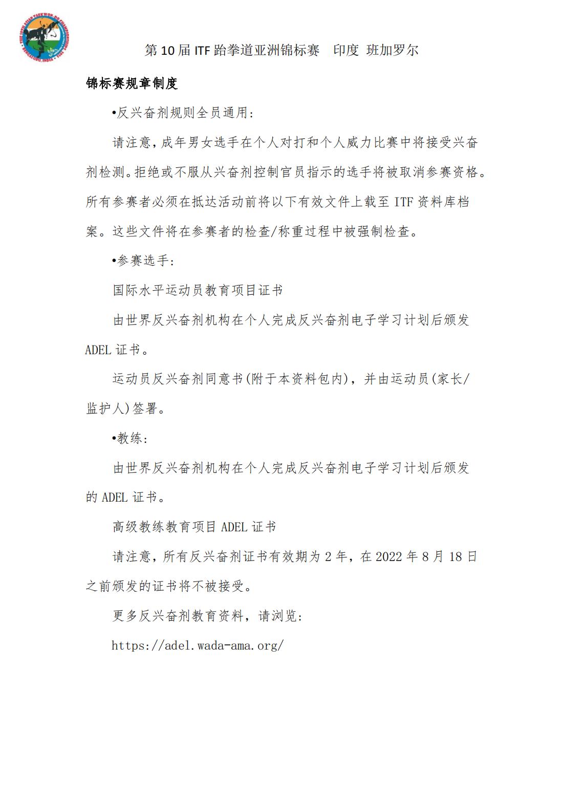 您的位置: 首页 >> 资讯中心 >> 赛事资讯>> 第10届亚洲ITF跆拳道锦标赛 2024年8月19日-25日 印度 班加罗尔
