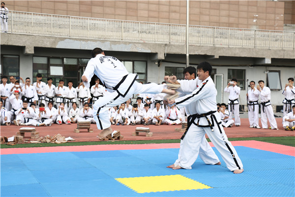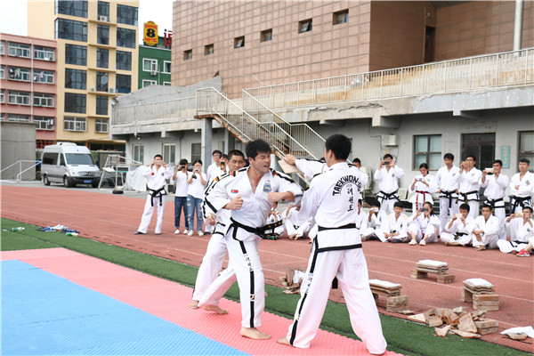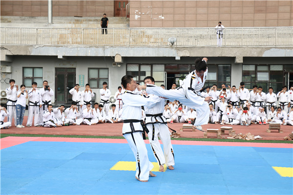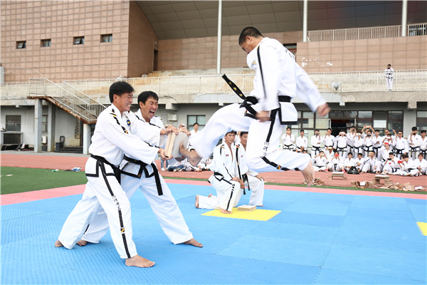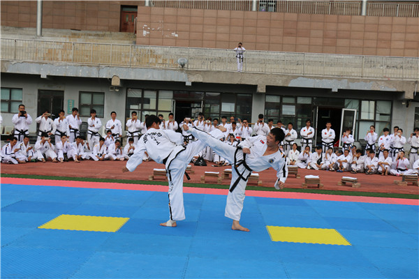 伴随着“2017中国国际跆拳道联盟技术讲习”的落幕,朝鲜国家跆拳道示范团也将离开中国,返回朝鲜备战即将在朝鲜平壤举办的“第20届世界ITF跆拳道锦标赛”,9月5日,为答谢中国联盟在讲习期间的各种关照,为给参加培训的学员留下一个美好的回忆,朝鲜国家跆拳道示范团在中国联盟总部北京东燕郊给培训学员带来了震撼人心的ITF跆拳道表演。