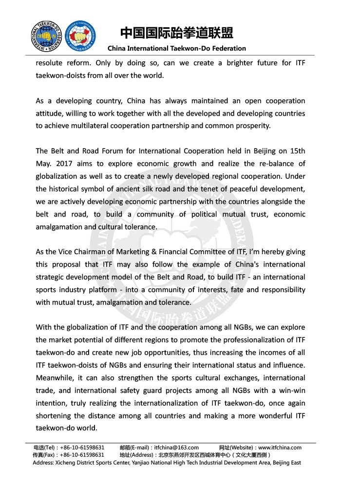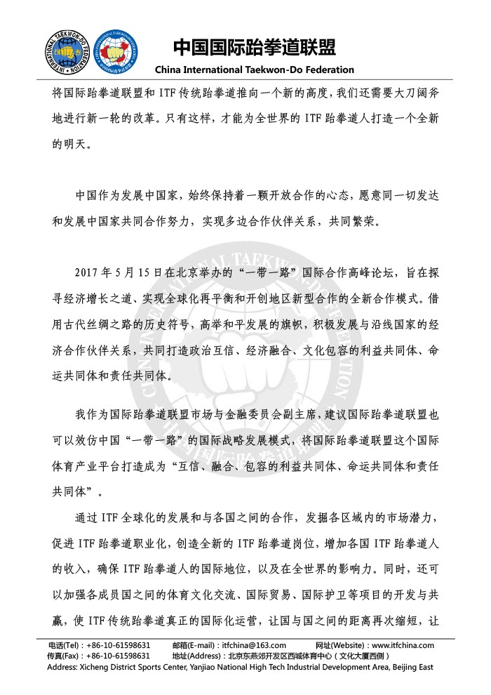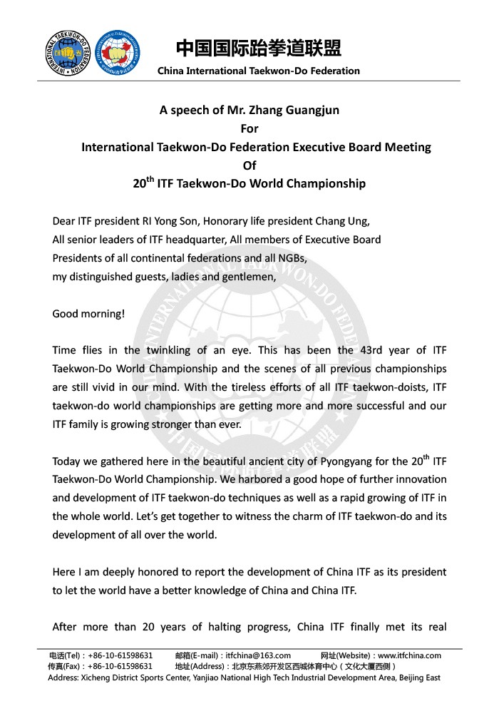您的位置: 首页 >> 资讯中心 >> 新闻资讯>> 国际跆拳道联盟执行委员会会议—张广军主席演讲稿