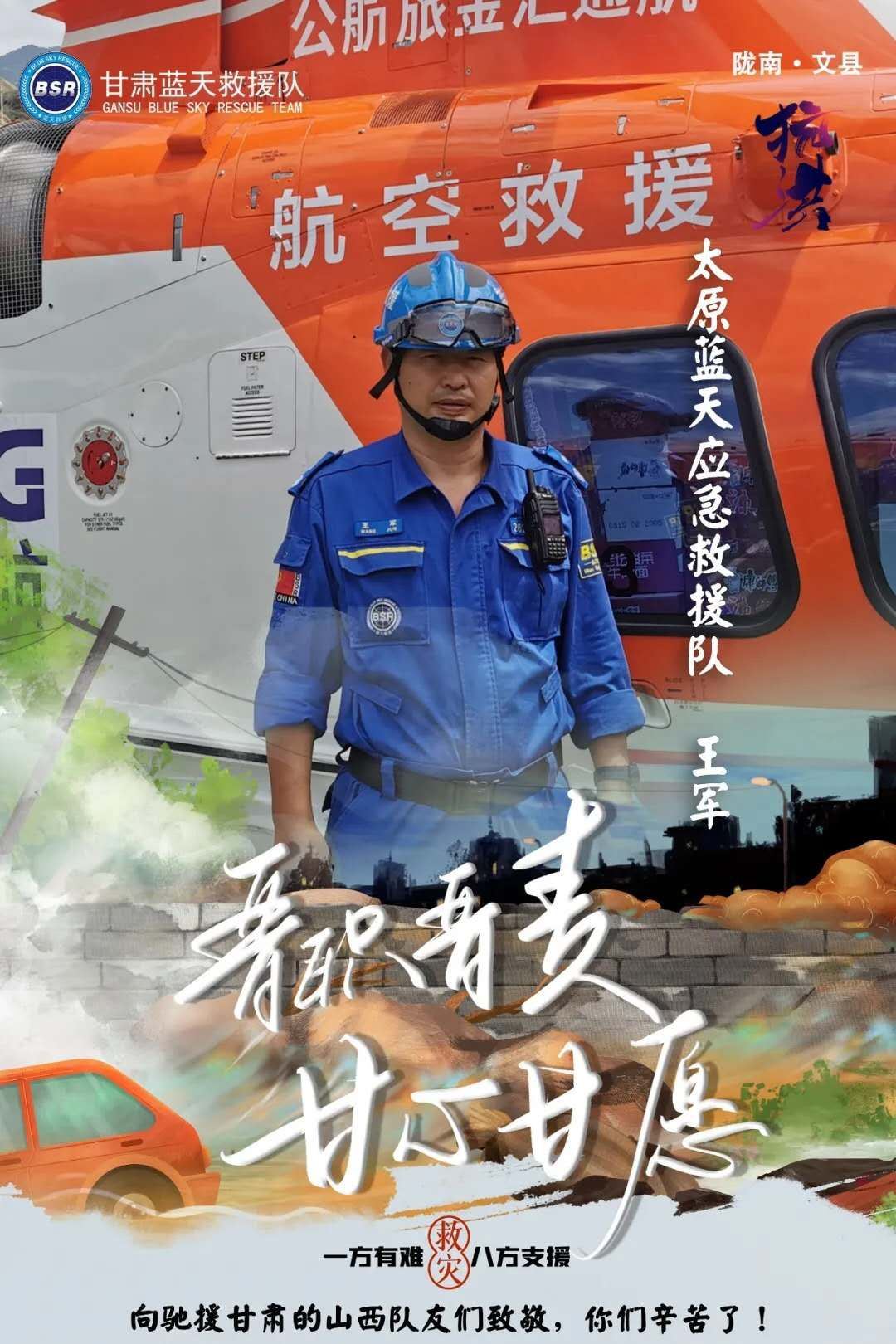 王军副主席带领的蓝天救援队奔赴甘肃陇南救援现场,向逆行者致敬