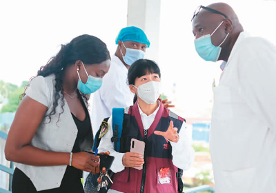 八月二十九日,在几内亚首都科纳克里的中几友好医院,中国抗疫医疗专家组成员为当地防疫工作提出建议。 |